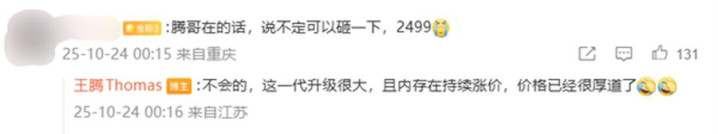 在网友的留言中,有人提到“腾哥在的话,说不定可以砸一下,2499”,王腾则回复道:“不会的,这一代升级很大,且内存在持续涨价,价格已经很厚道了。”这一回应直接点明了K90系列定价的背后原因,内存价格的上涨无疑是此次定价的重要因素。